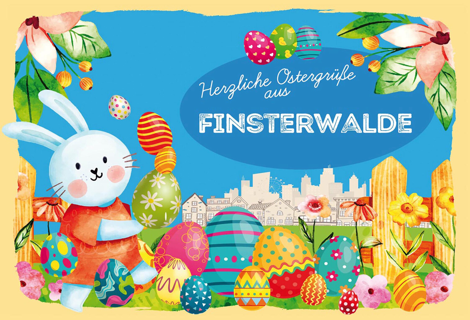 Schild Spruch Herzliche Ostergrüße aus Finsterwalde Osterhase Eier Comic JW