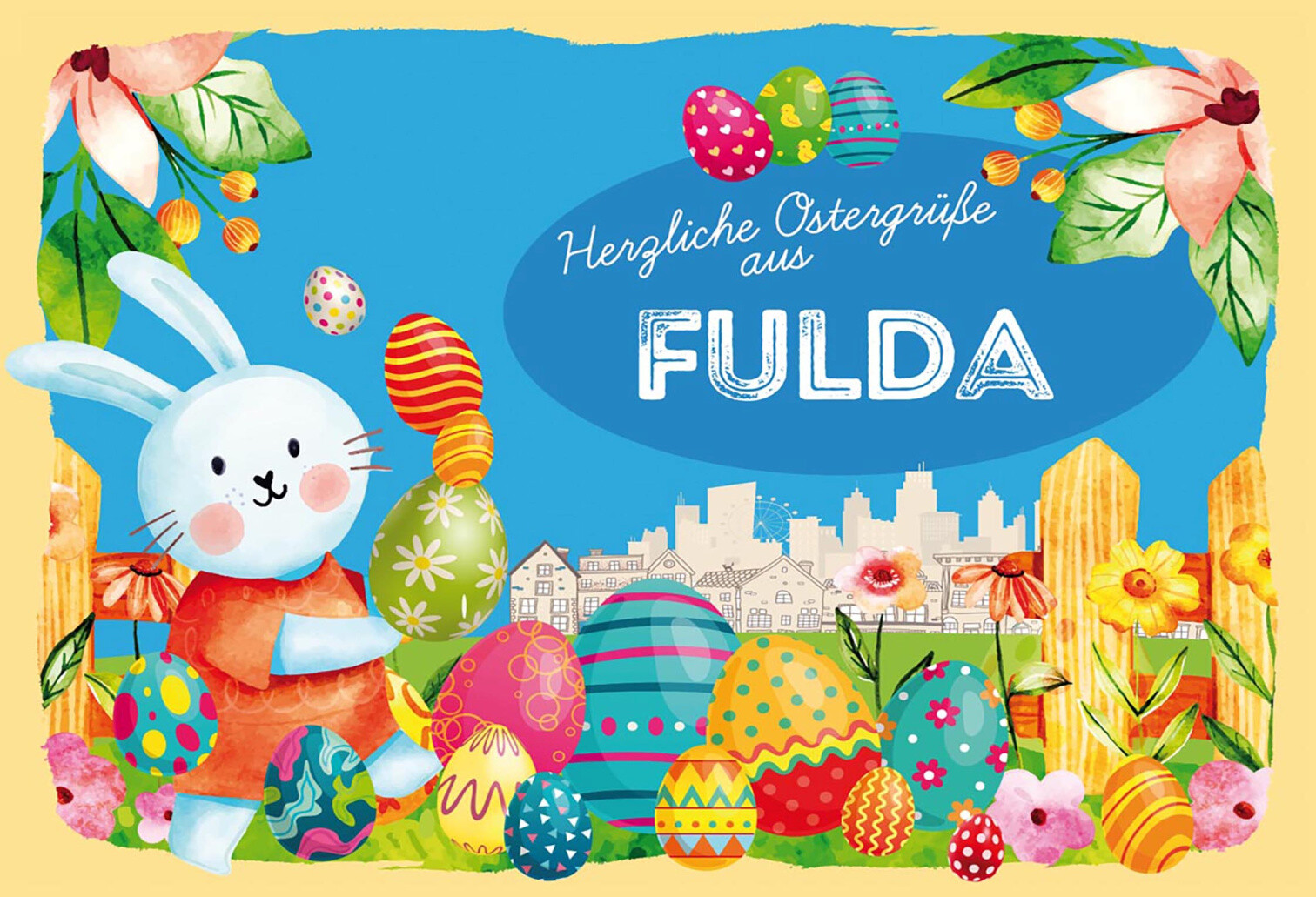 Schild Spruch Herzliche Ostergrüße aus Fulda Osterhase Eier Comic JW