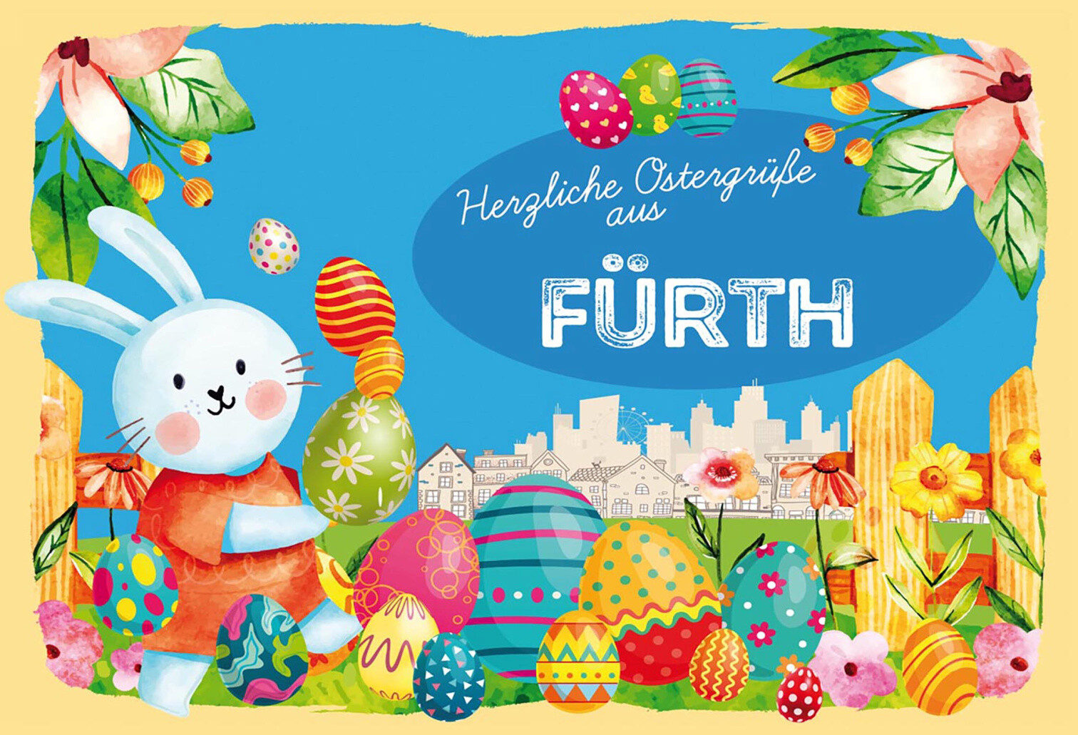 Schild Spruch Herzliche Ostergrüße aus Fürth Osterhase Eier Comic JW