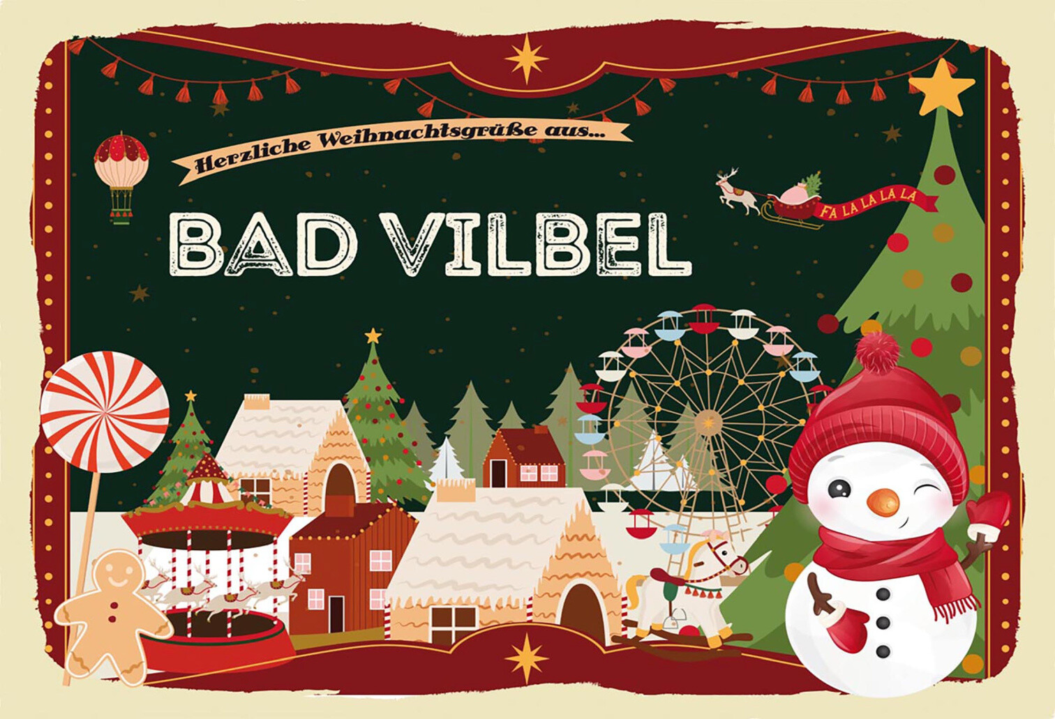 Schild Spruch Herzliche Weihnachtsgrüße aus Bad Vilbel Comic Schneemann JW