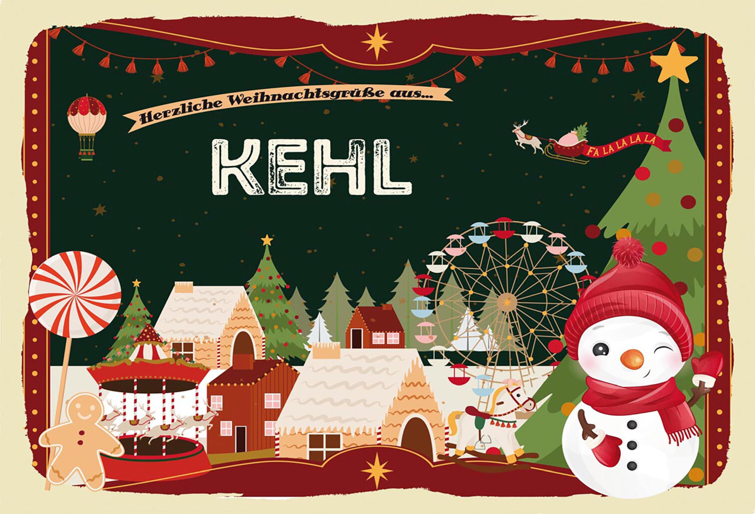 Schild Spruch Herzliche Weihnachtsgrüße aus Kehl Comic Schneemann JW