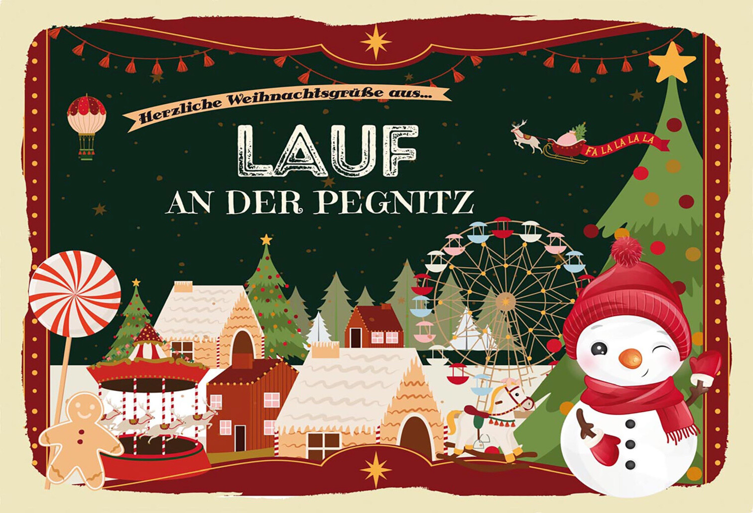 Schild Spruch Herzliche Weihnachtsgrüße aus Lauf an der Pegnitz Comic JW