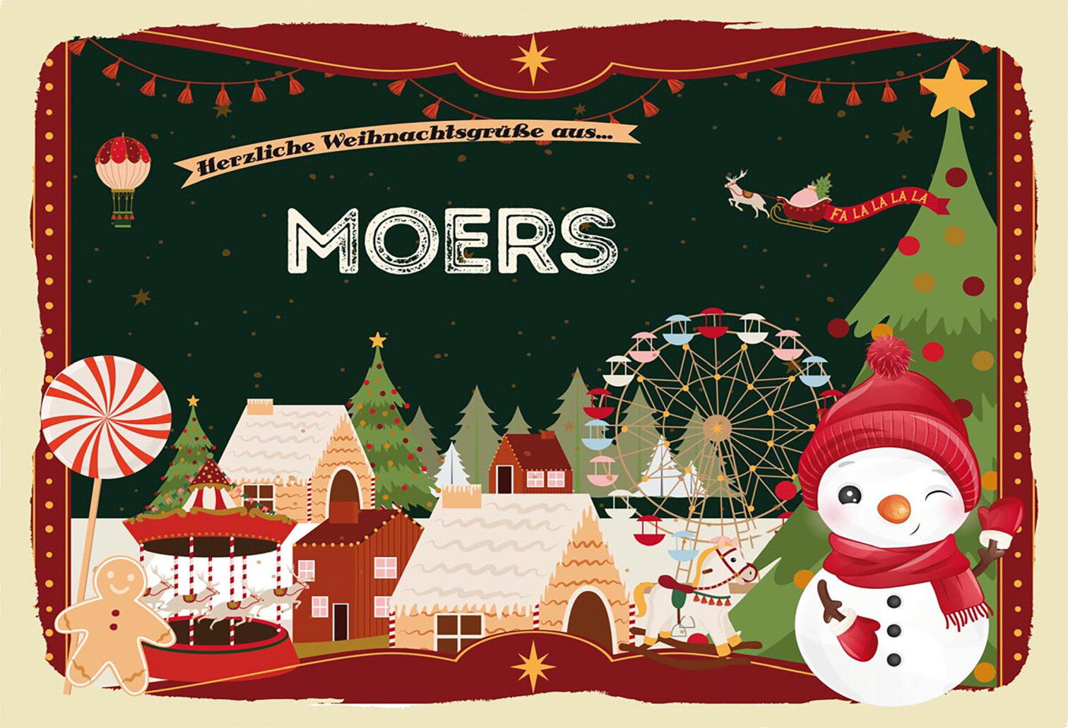 Schild Spruch Herzliche Weihnachtsgrüße aus Moers Comic Schneemann JW