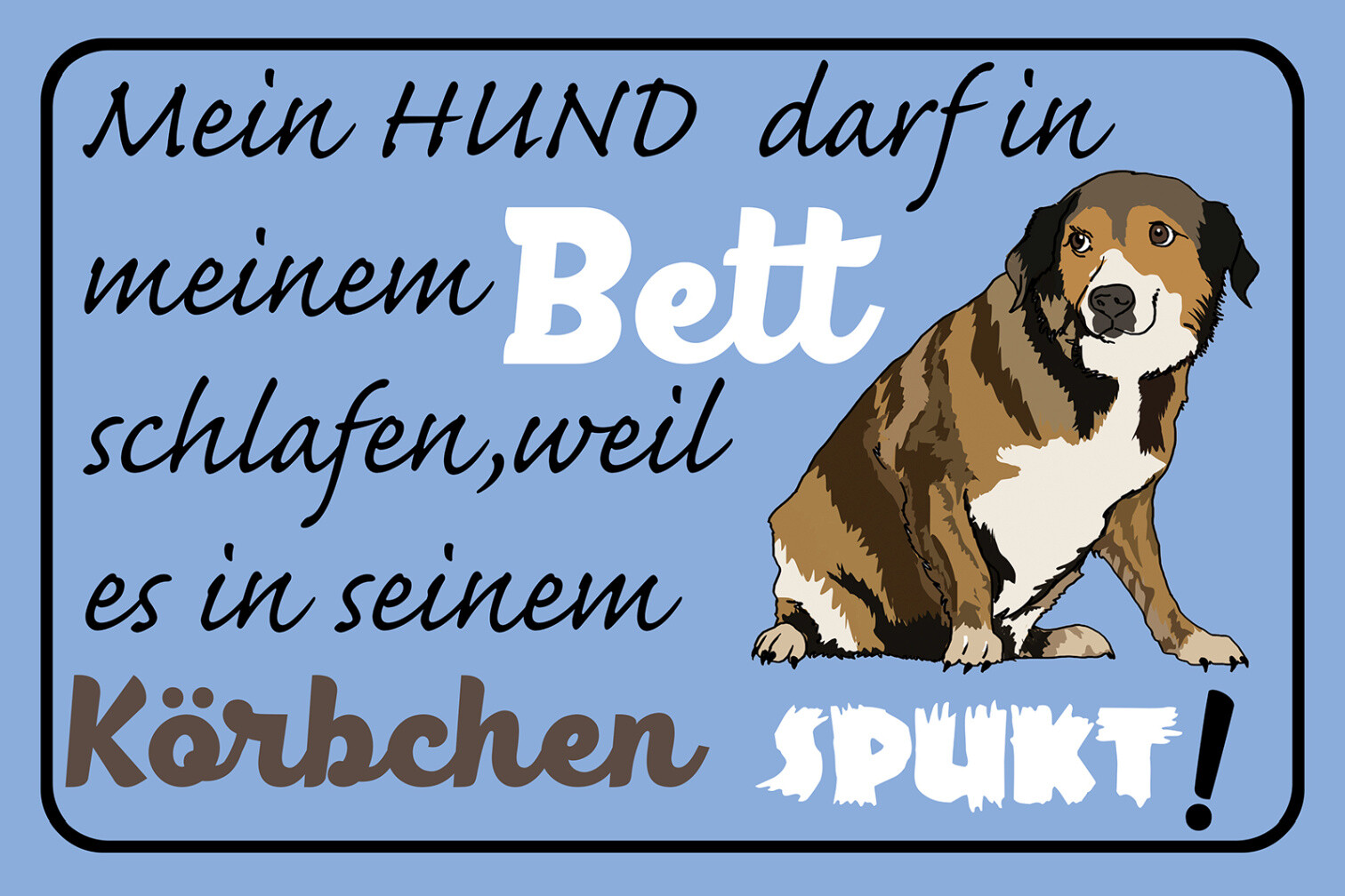 Schild Spruch Hund darf in Bett schlafen Weil es im Körbchen spukt JW