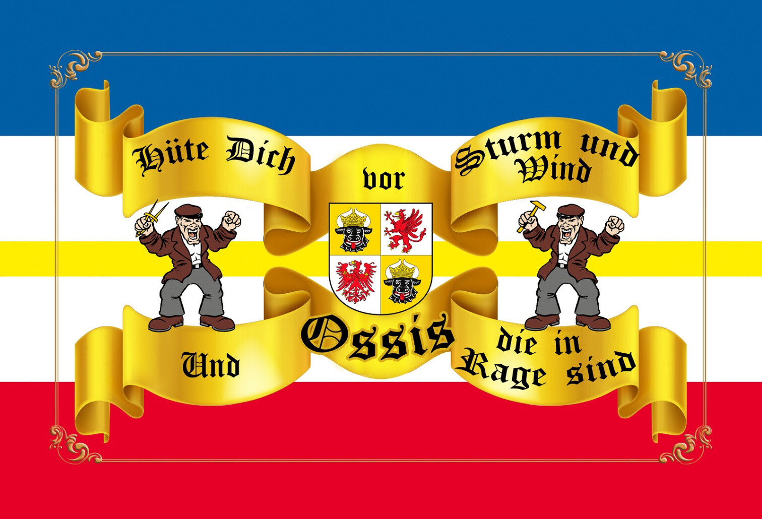 Schild Spruch Hüte dich vor Strum und Wind und Ossis die in Rage sind DDR JW