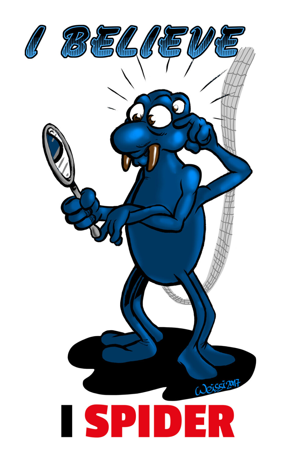 Schild Spruch I believe I spider I glaub ich spinne Bad English JW