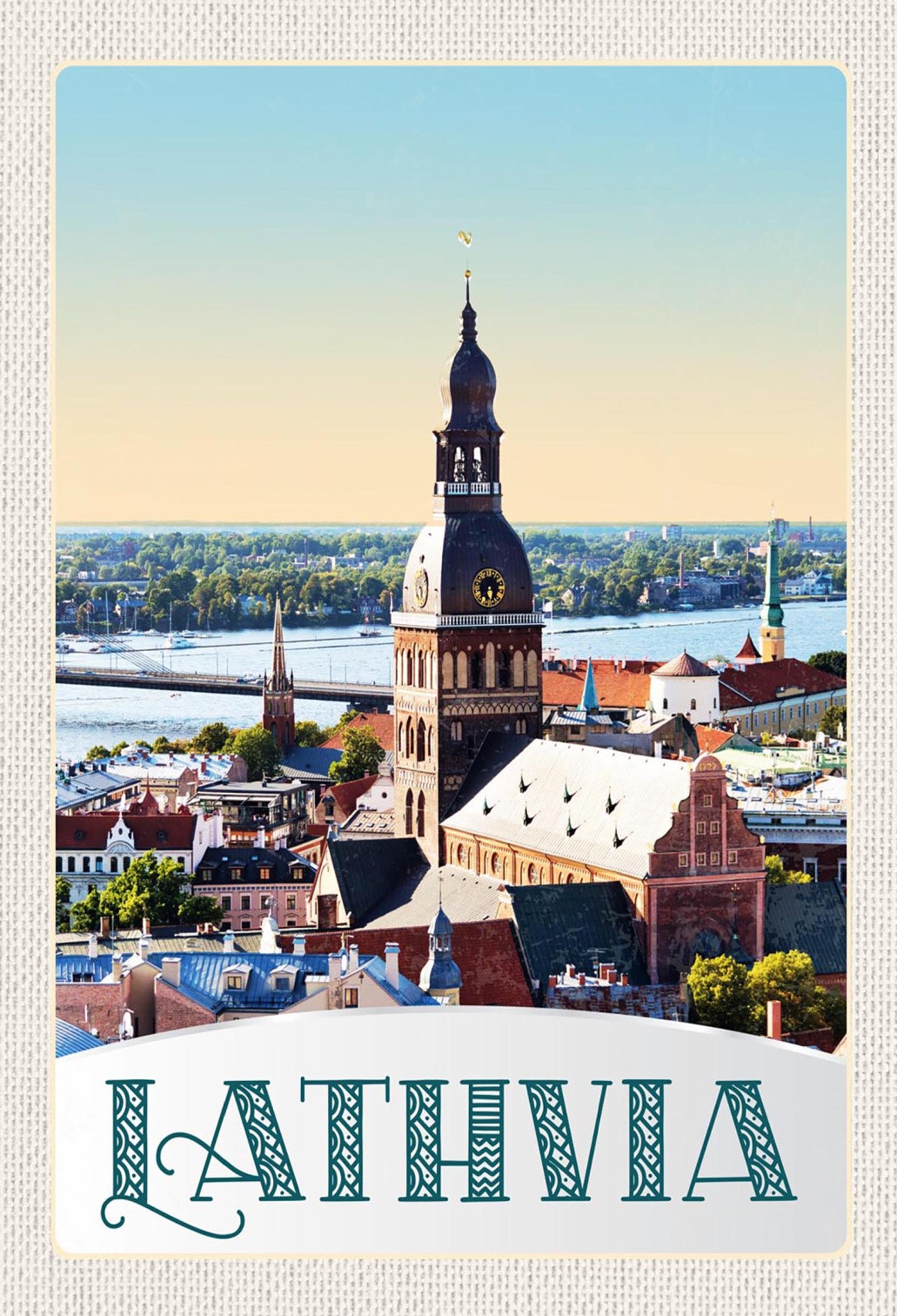 Schild Spruch Lathvia Lettland Kirche Fluss Brücke Stadt JW