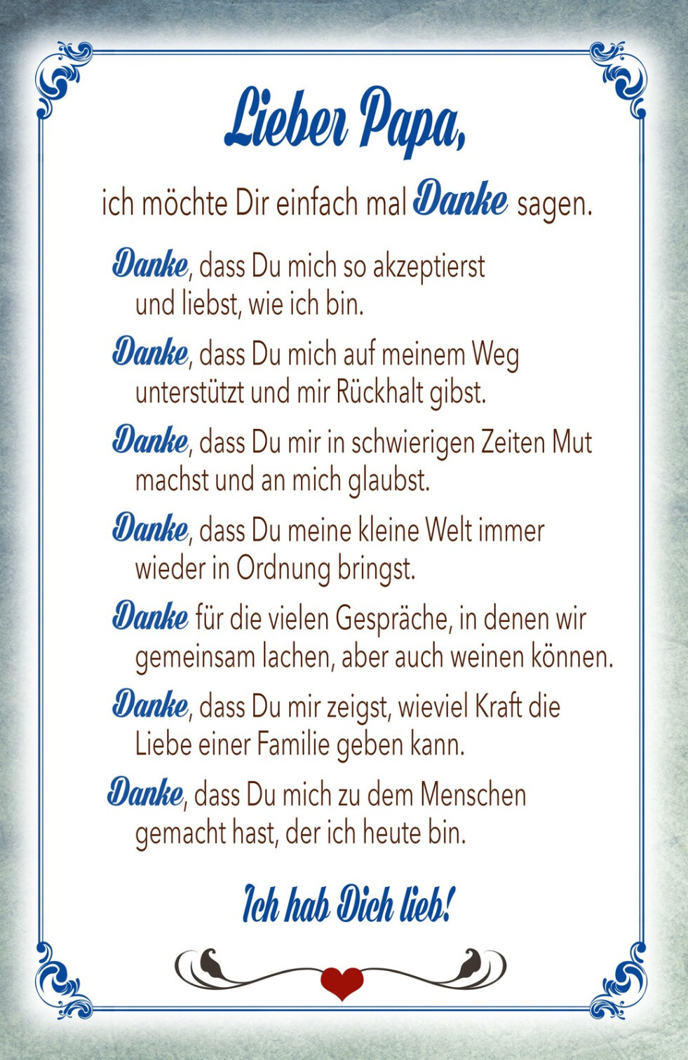 Schild Spruch Lieber Papa Ich möchter dir einfach mal Danke sagen Familie JW