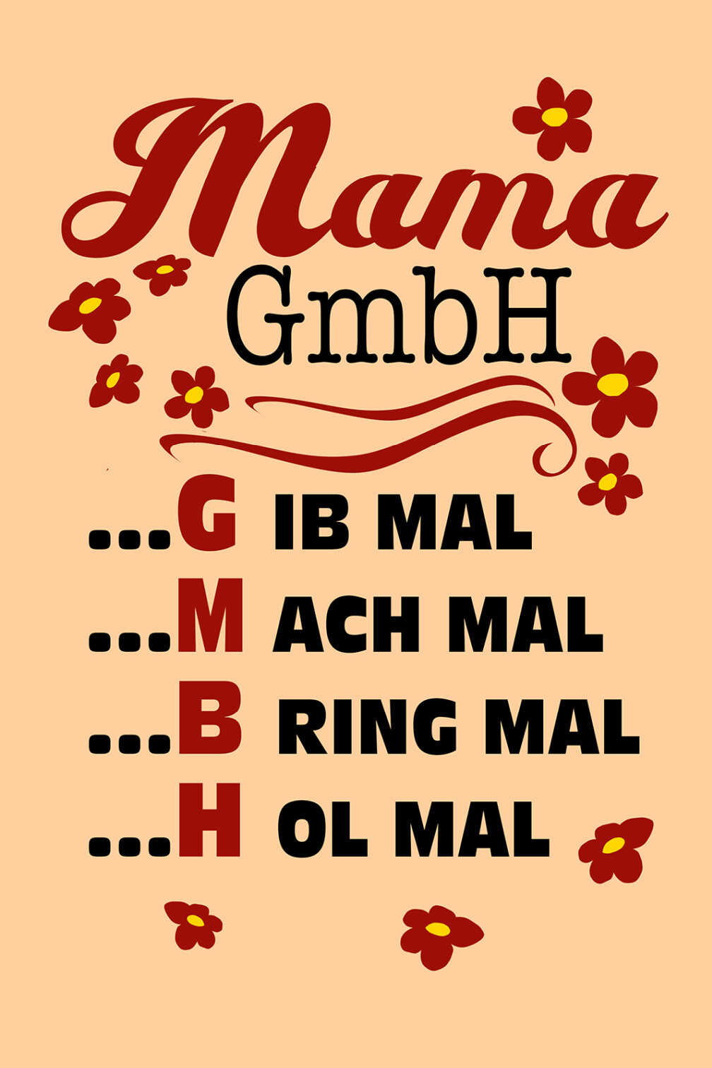 Schild Spruch Mama GmbH G ib mal M ach mal B ring mal H ol mal JW