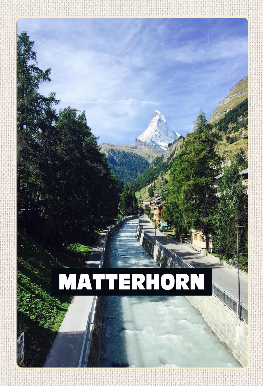 Schild Spruch Matterhorn Schweiz Fluss Dorf Wald JW