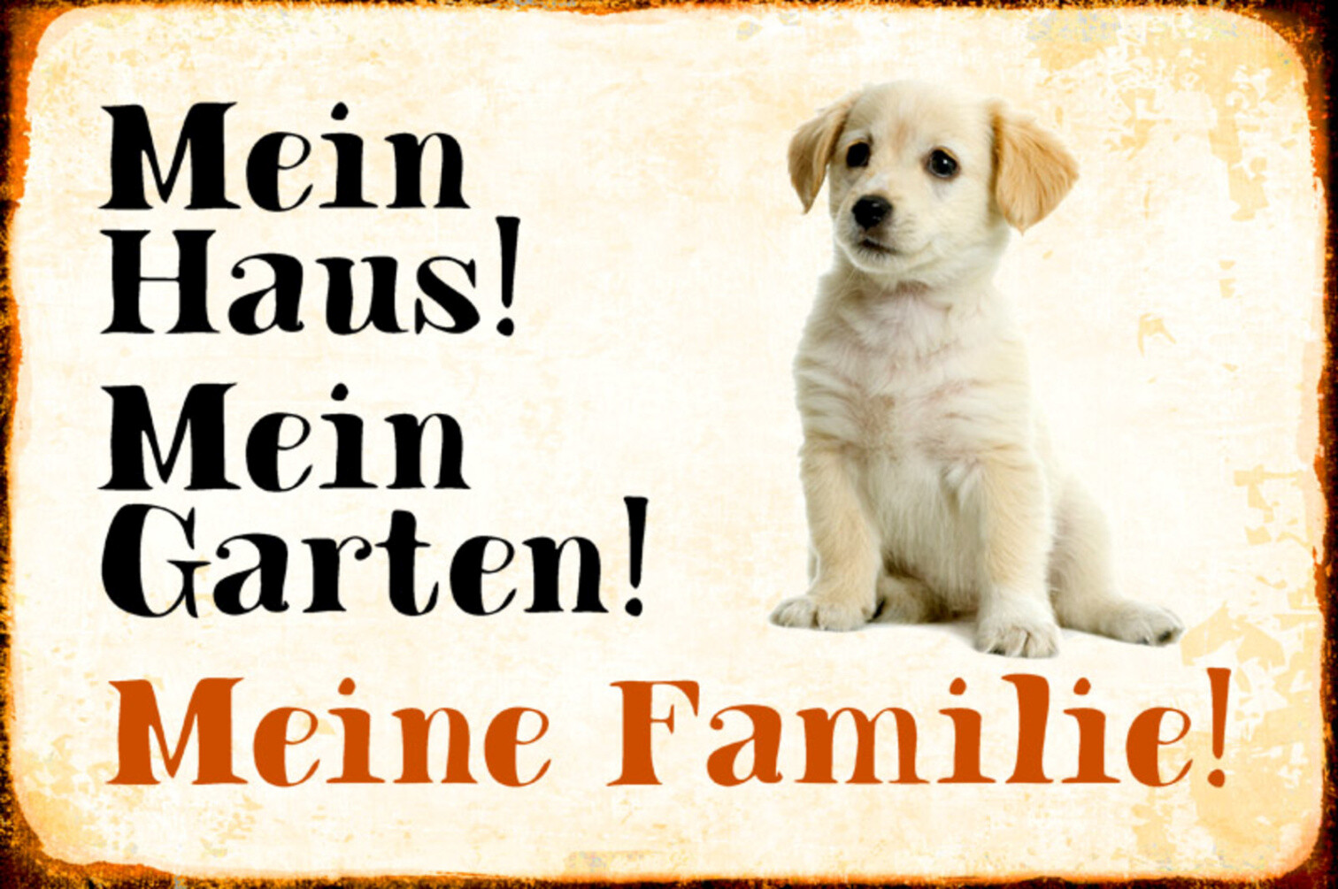 Schild Spruch Mein Haus Mein Garten Meine Familie Hund JW