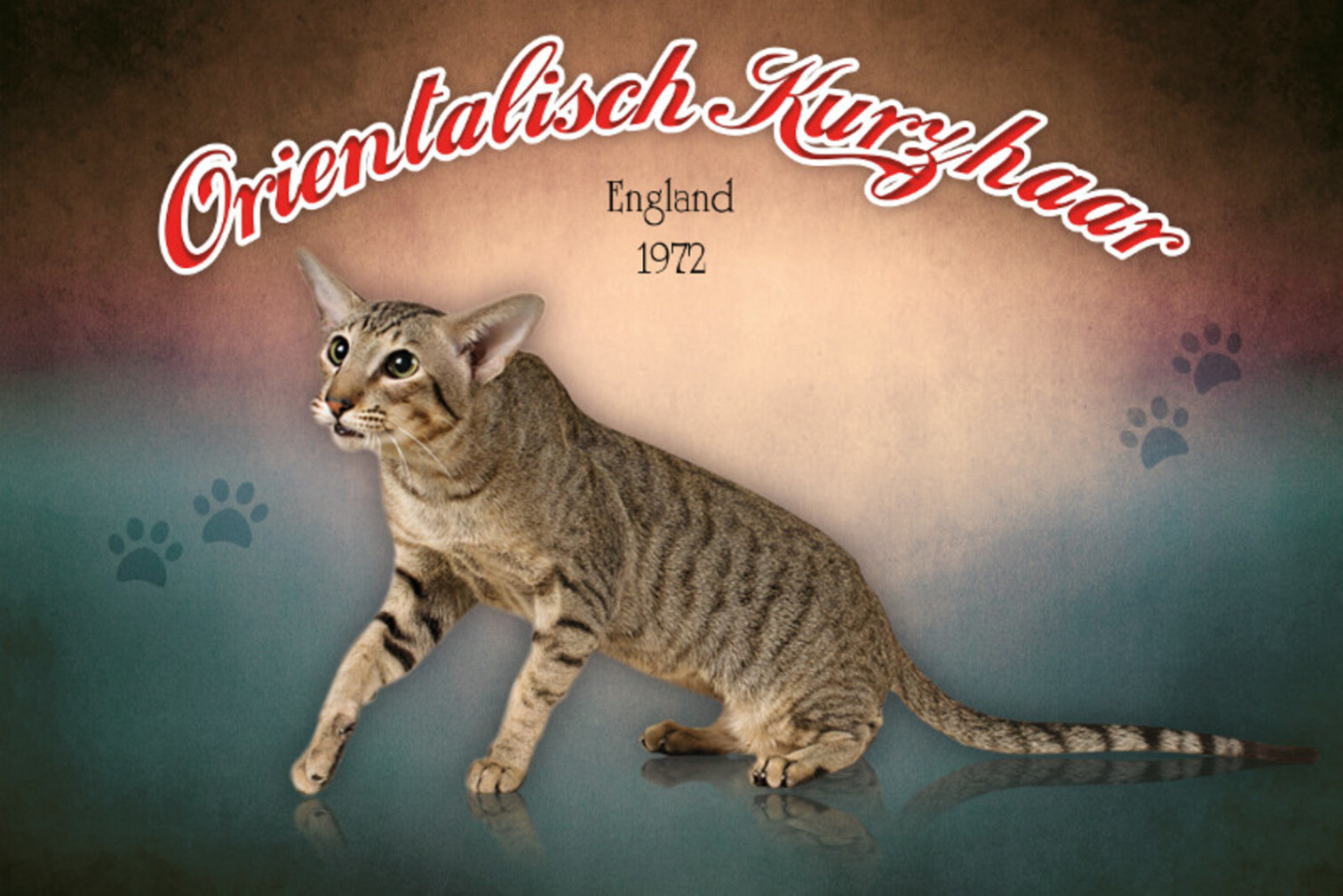 Schild Spruch Orientalische Kurzhaar Katze England 1972 JW