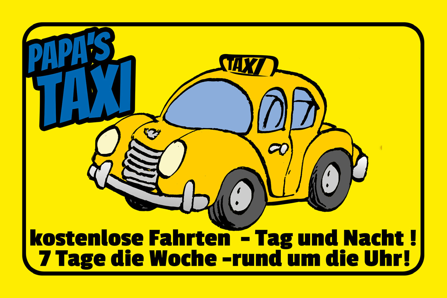 Schild Spruch Papas Taxi Kostenlose Fahrten Tag und Nacht Auto Comic JW