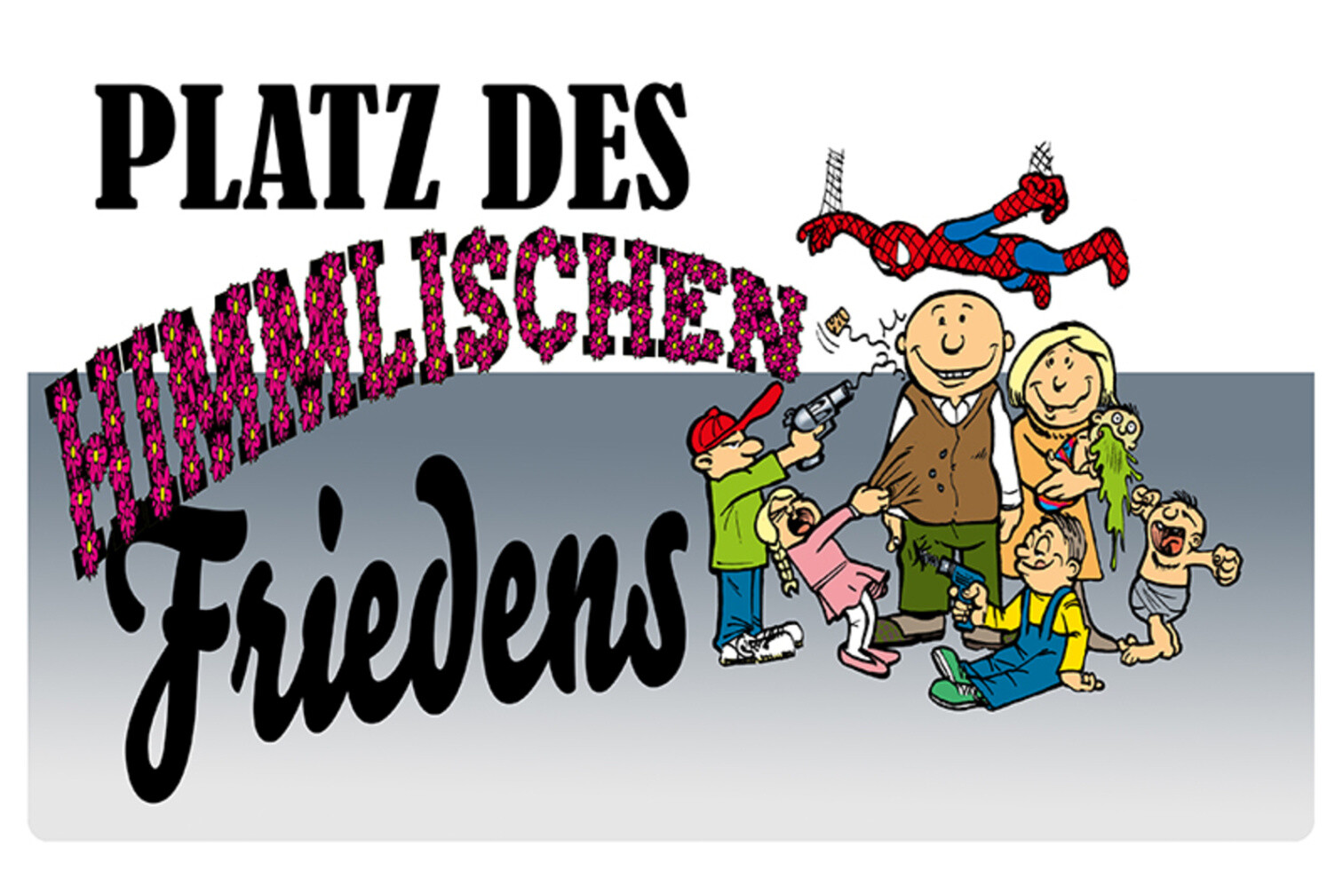 Schild Spruch Platz des himmlischen Frieden Familie Kinder Chaos JW