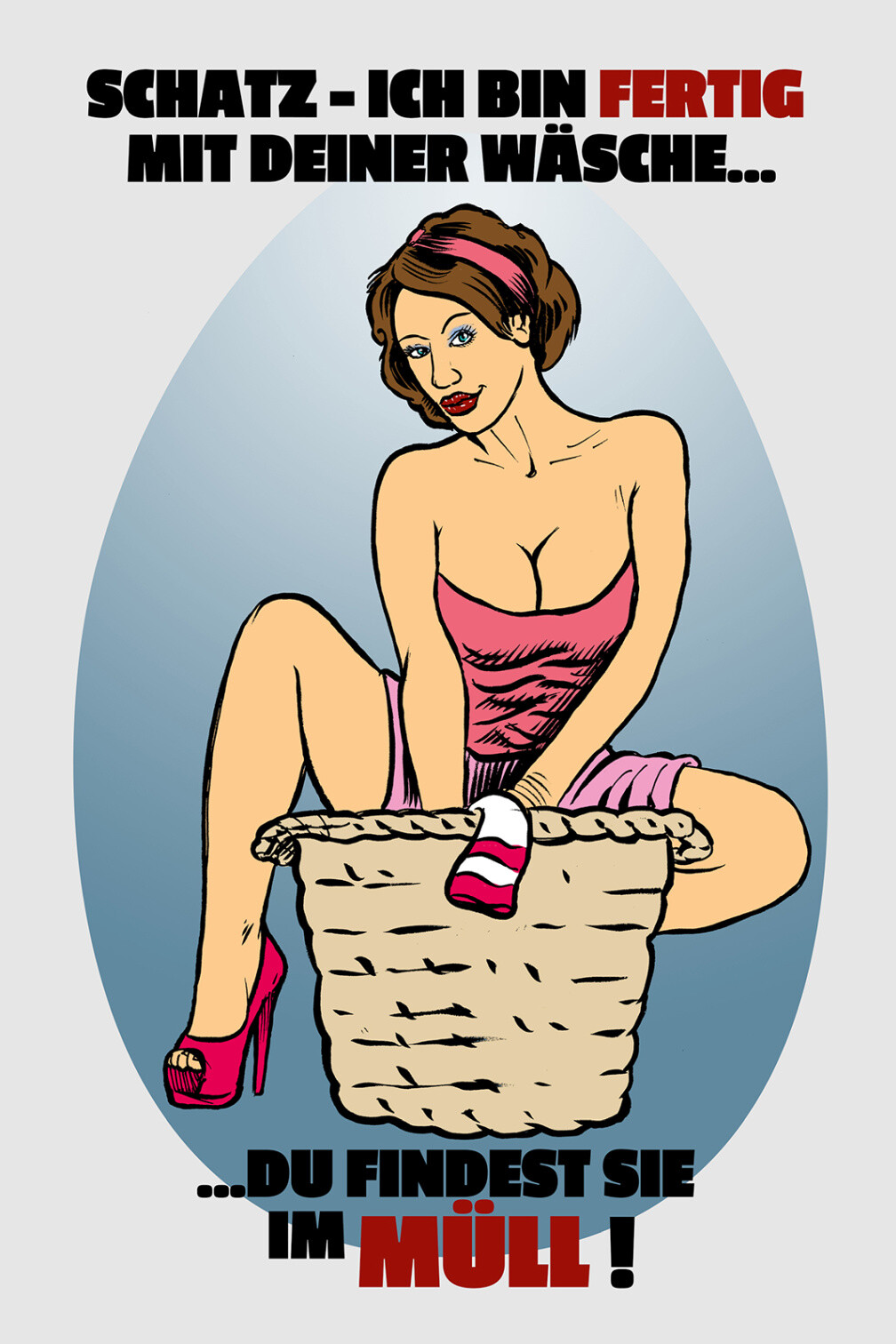 Schild Spruch Schatz Ich bin fertig mit der Wäsche Findest sie im Müll JW