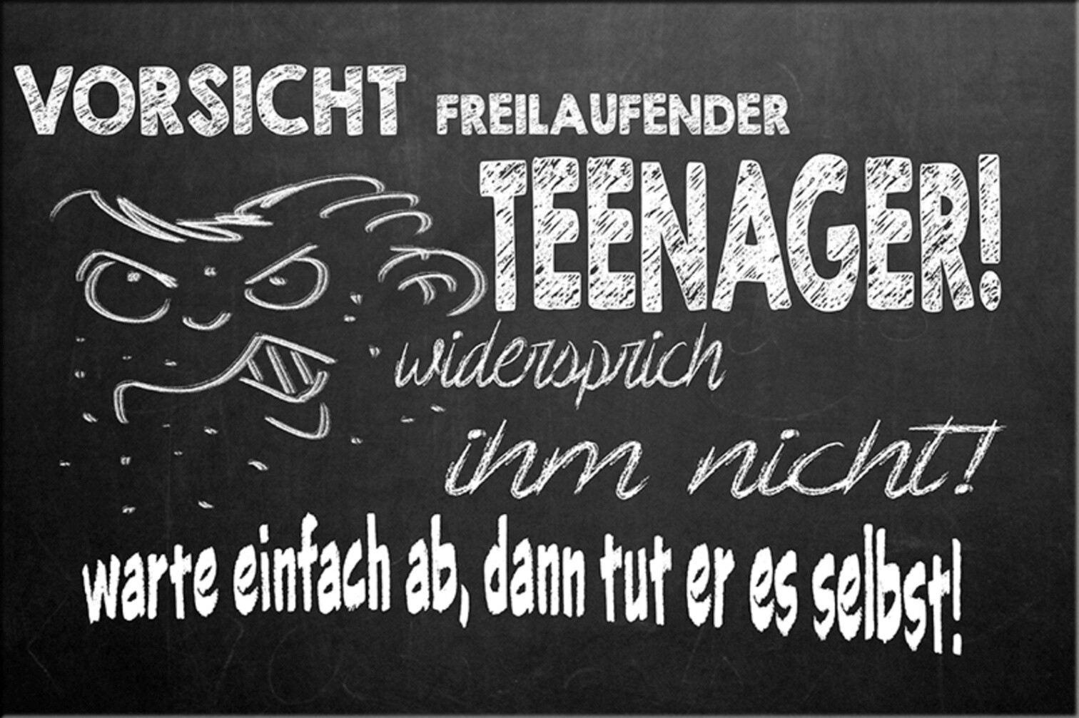 Schild Spruch Vorsicht freilaufender Teenager Widersprich ihm nicht warte JW