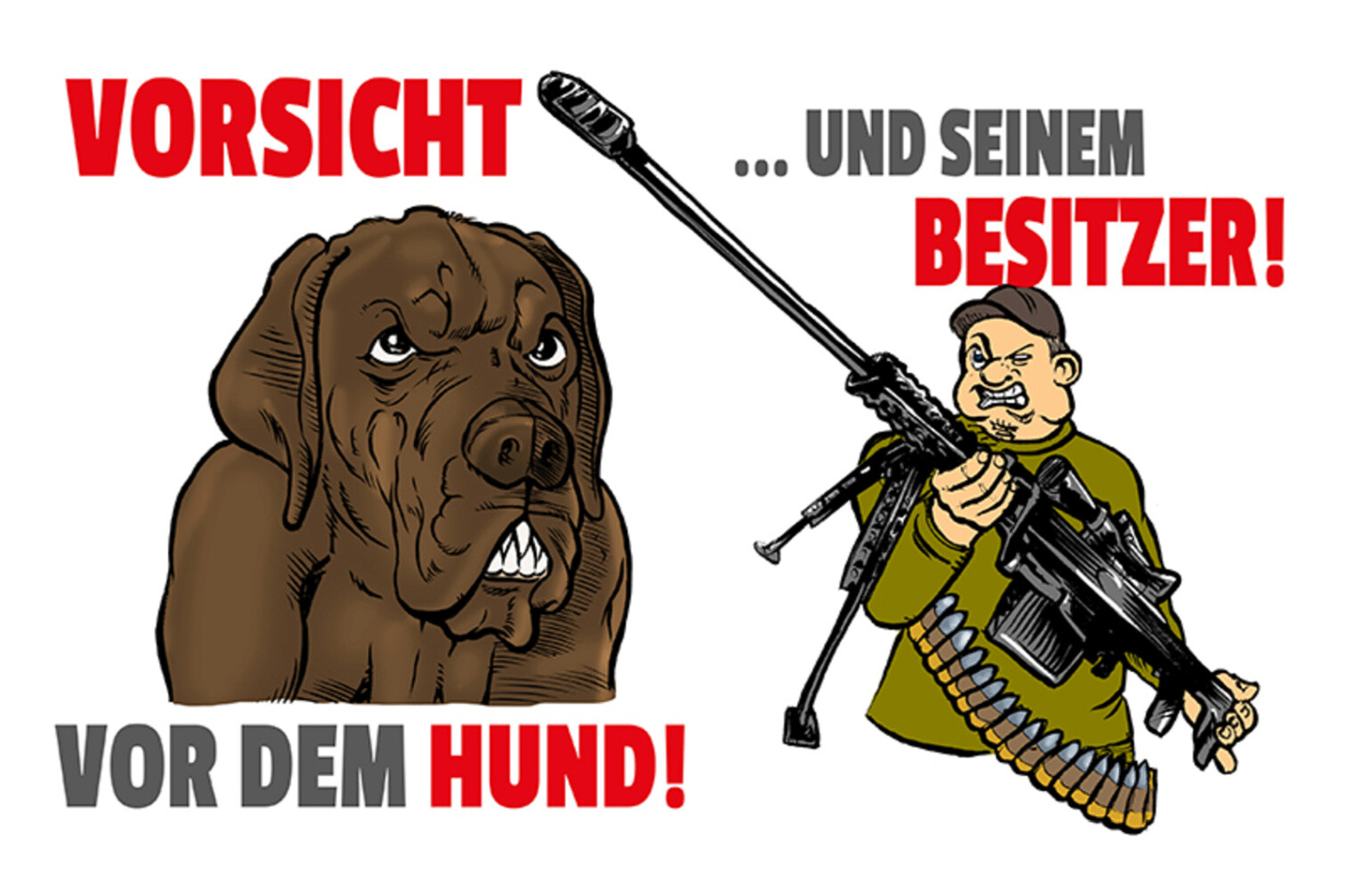 Schild Spruch Vorsicht vor dem Hund und seinem Besitzer Waffe Warnung JW
