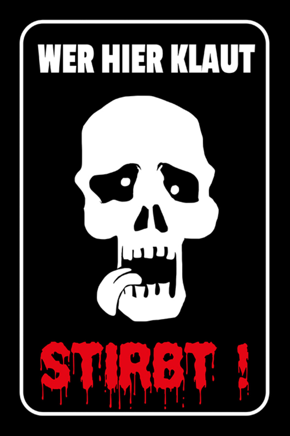 Schild Spruch Wer hier klaut stirbt Warnung Gefahr JW