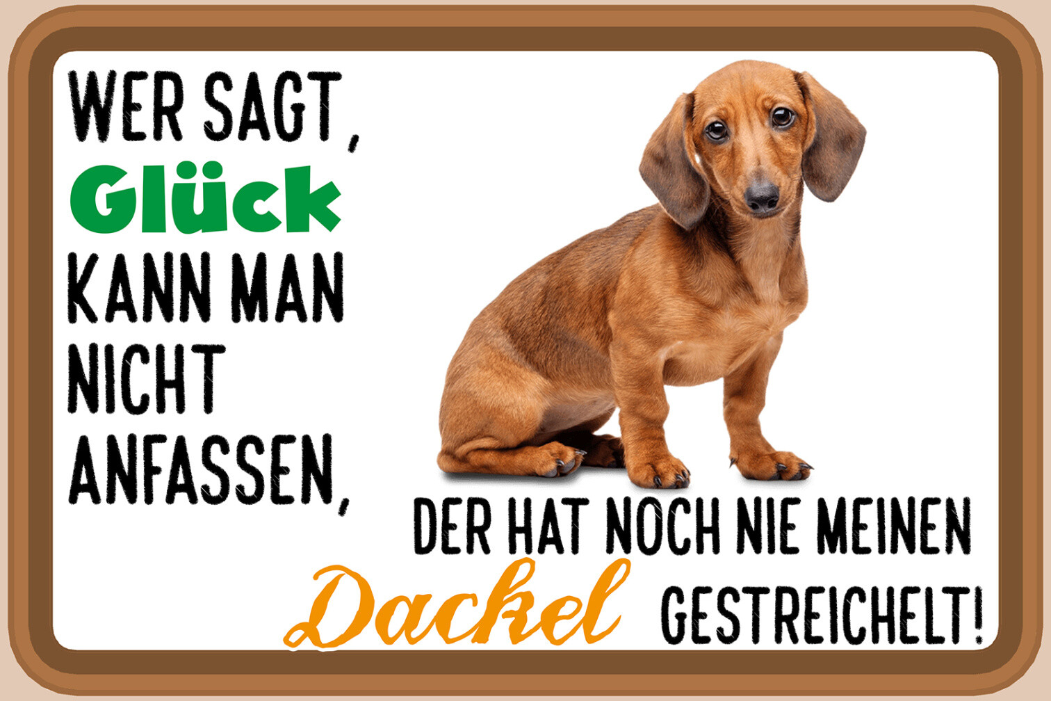 Schild Spruch Wer sagt Glück nicht anfassen hat nie Dackel gestreichelt JW