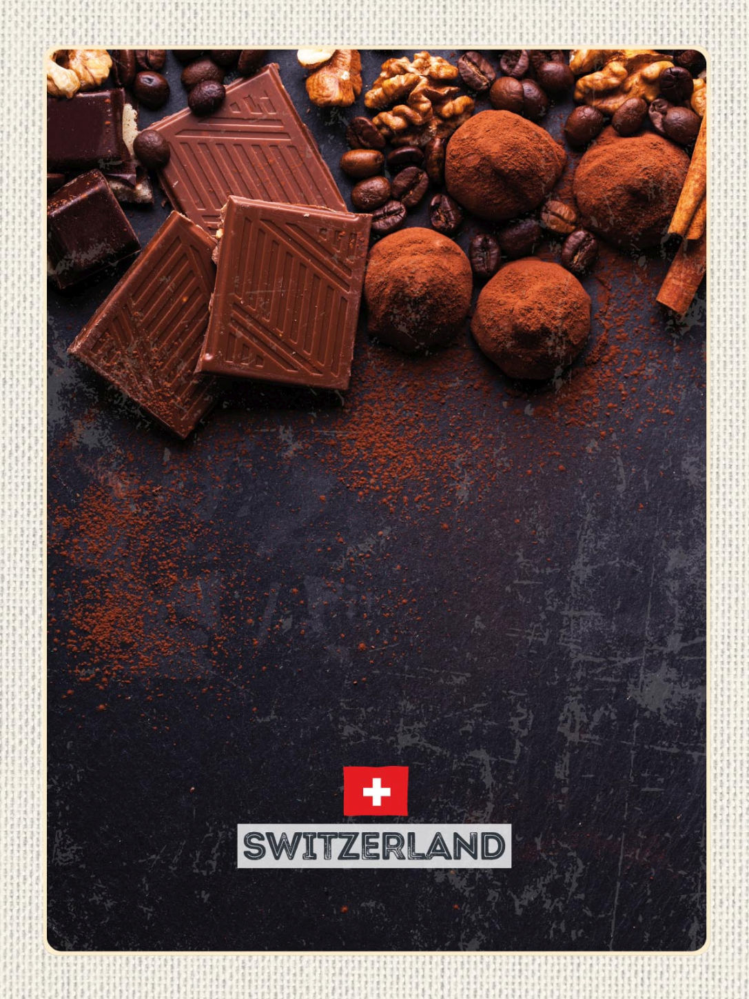 Schild Switzerland Schweiz Schweizer Schokokade 12x18 20x30 30x40 Blech/Holz
