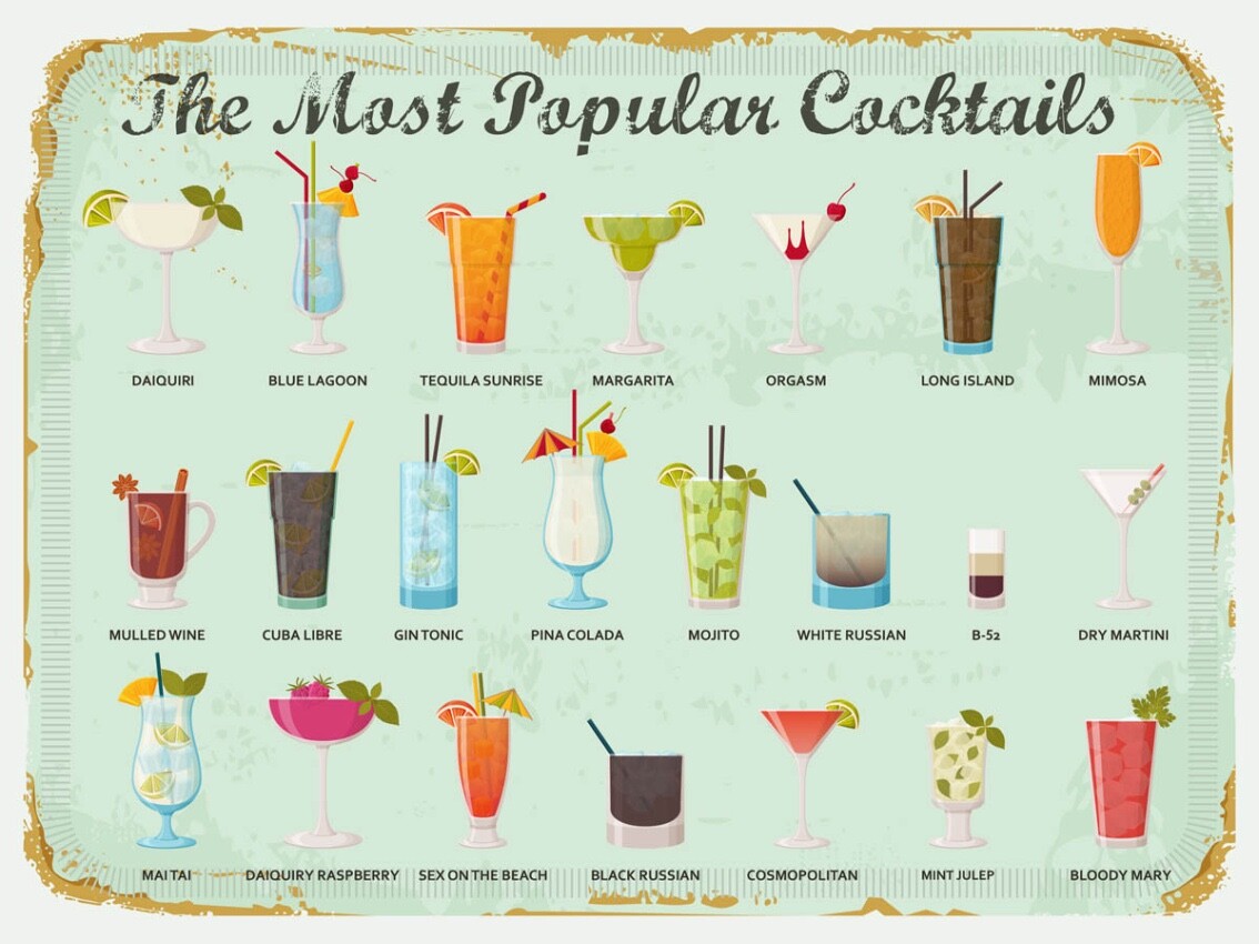 Schild The Most Popular Cocktails Alkohol Bar 12x18 20x30 30x40 Blech/Holz