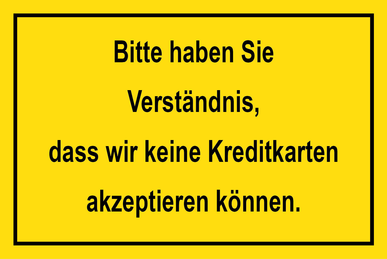 Schild Verständnis Keine Kreditkarten 12x18 / 20x30 / 30x40 Blech od. Holz