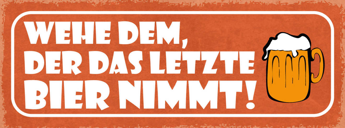 Schild Wehe Dem Der Das Letzte Bier Nimmt Alkohol Glas 27x10 Blech od.Holz