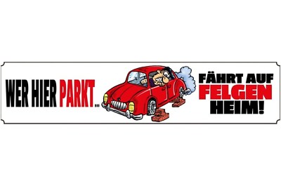 Schild wer hier parkt parken parkplatz auto felgen verbot 46 x 10 blech od. holz