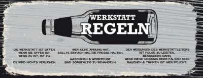 Schild werkstatt regeln offen zu verliehen ahnung werkzeuge 27x10 blech od.holz