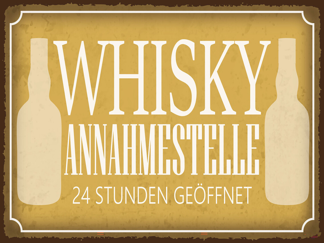 Schild Whisky Annahmestelle 24 Std Geöffnet 12x18 20x30 30x40 Blech od. Holz
