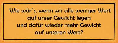 Schild wie wär's wenn wir alle weniger wert auf unser gewicht legen 27x10
