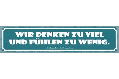 Schild wir denken zu viel und fühlen zu wenig c. chaplin 46x10 blech od. holz