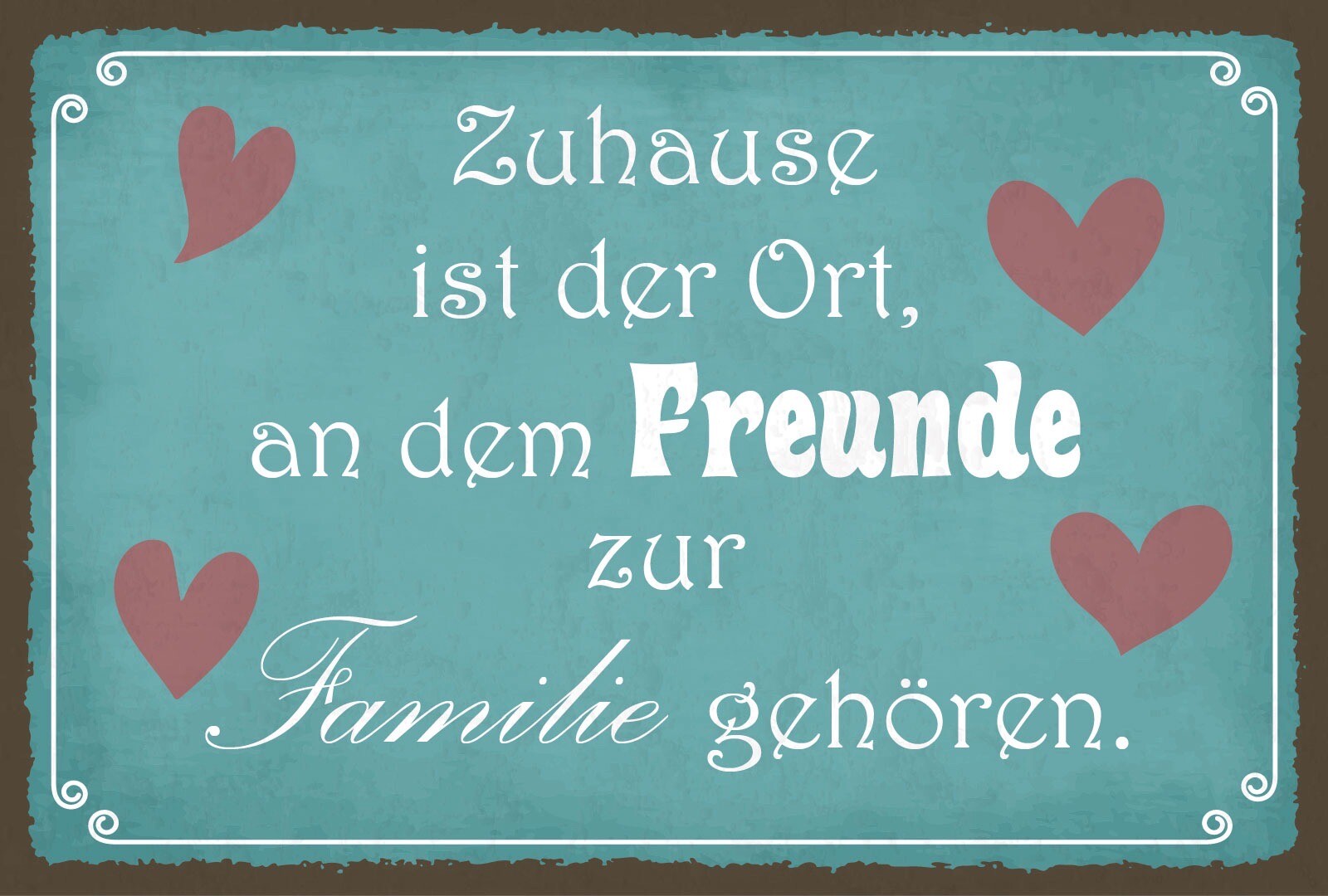 Schild Zuhause Ort Freunde Familie Haus 12x18 / 20x30 / 30x40 Blech od. Holz
