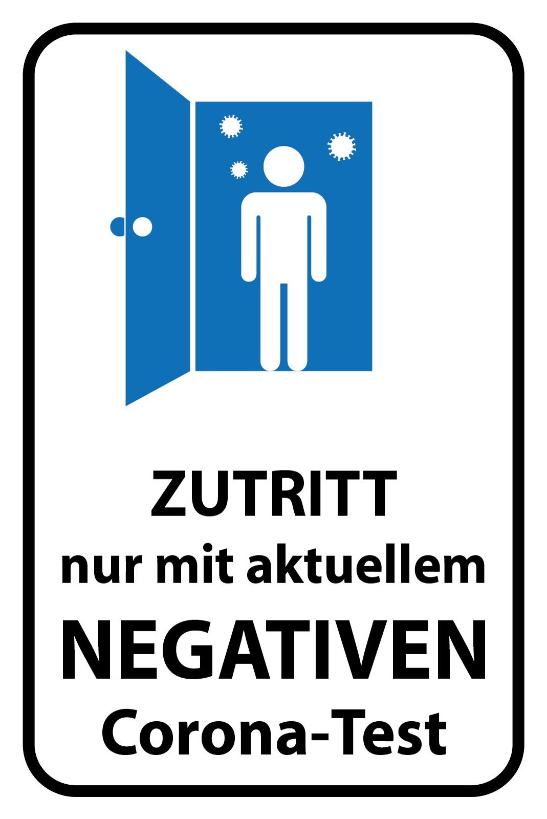 Schild Zutritt Negativer Corona Test 12x18 / 20x30 / 30x40 Blech od. Holz