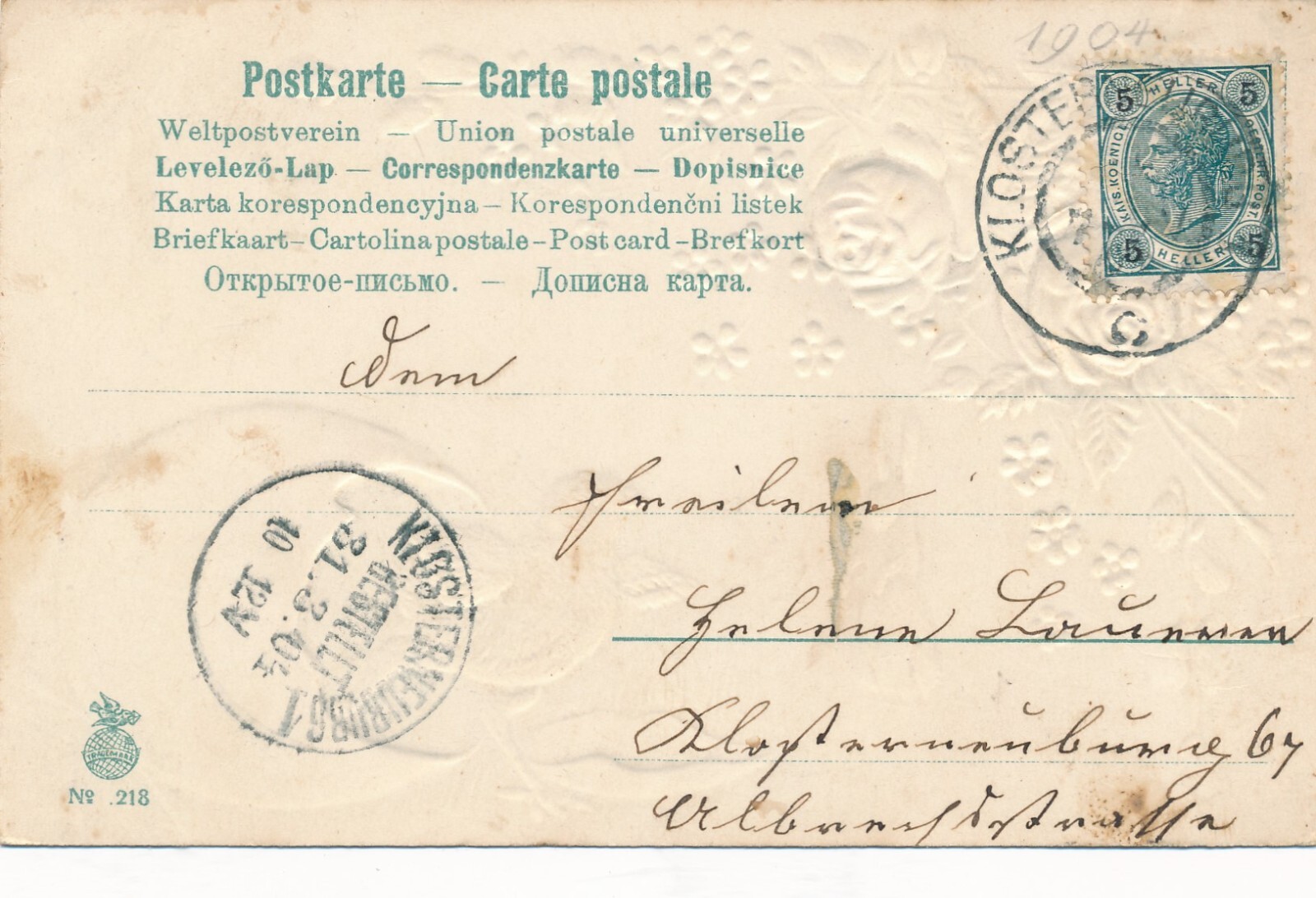 Stoff Präge Motiv - Karte Fröhliche Ostern Kücken aus Ei Ansichtskarte (13695)