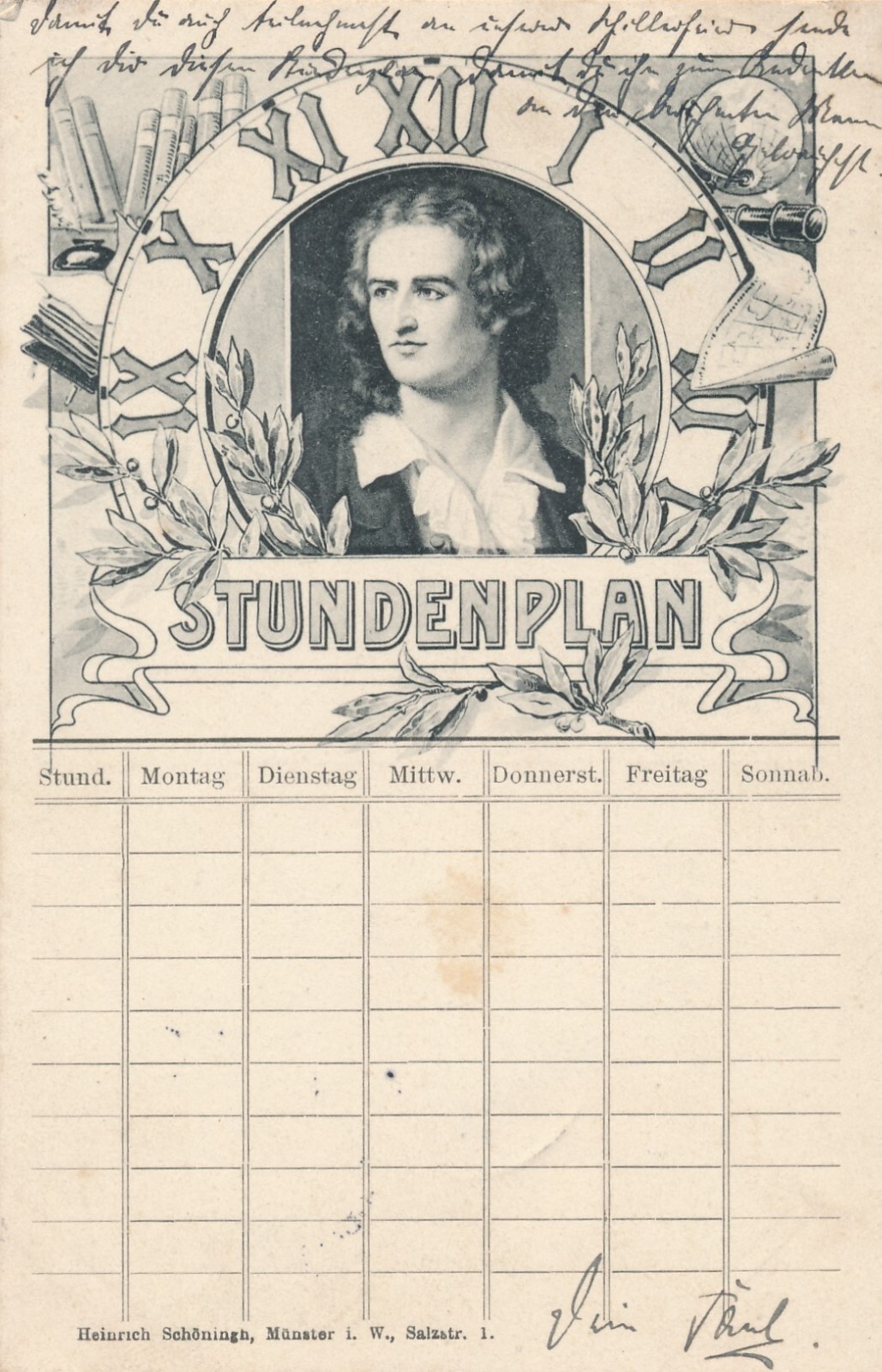 Stundenplan - Motiv - Karte mit Sonnenuhr und Schiller (11482)