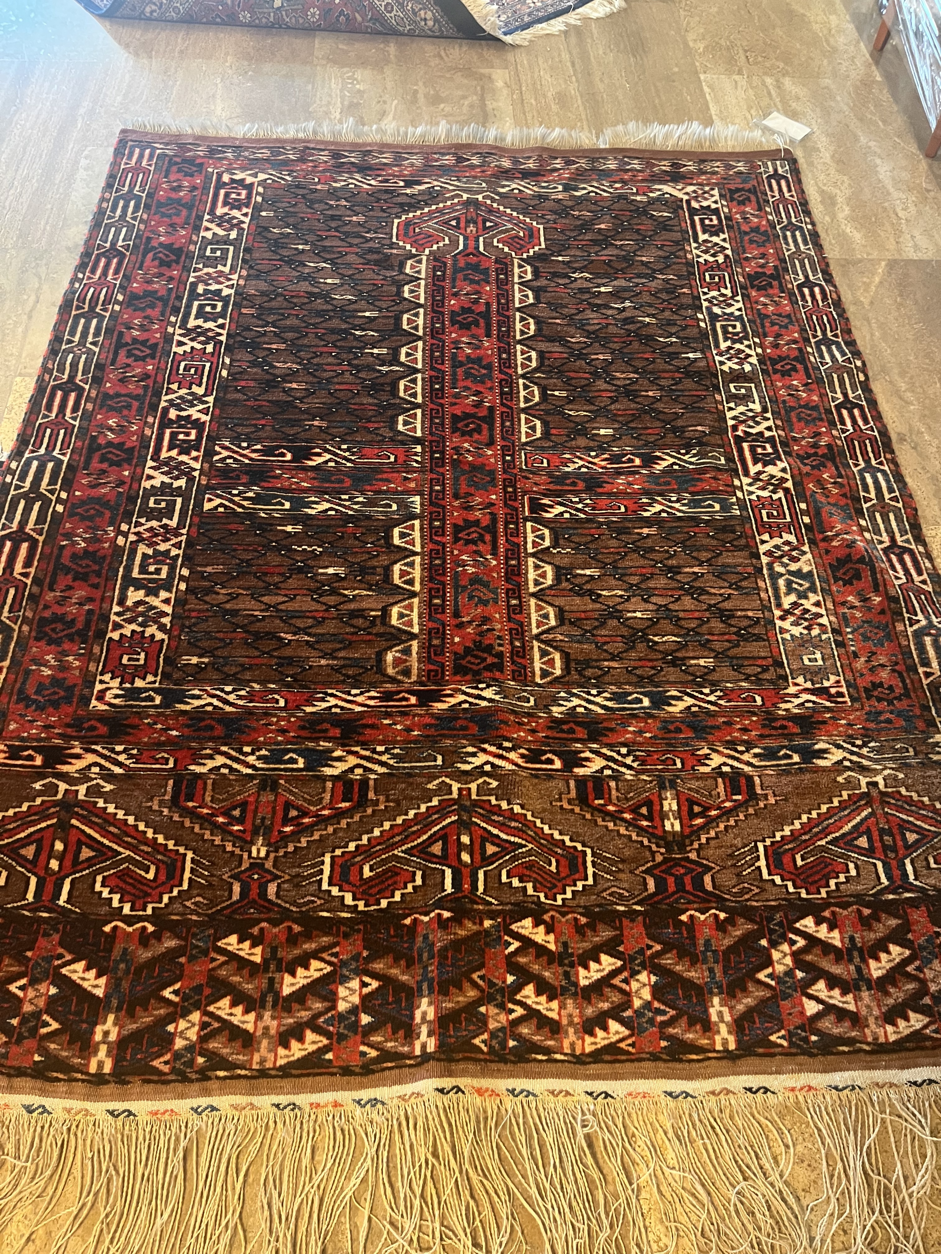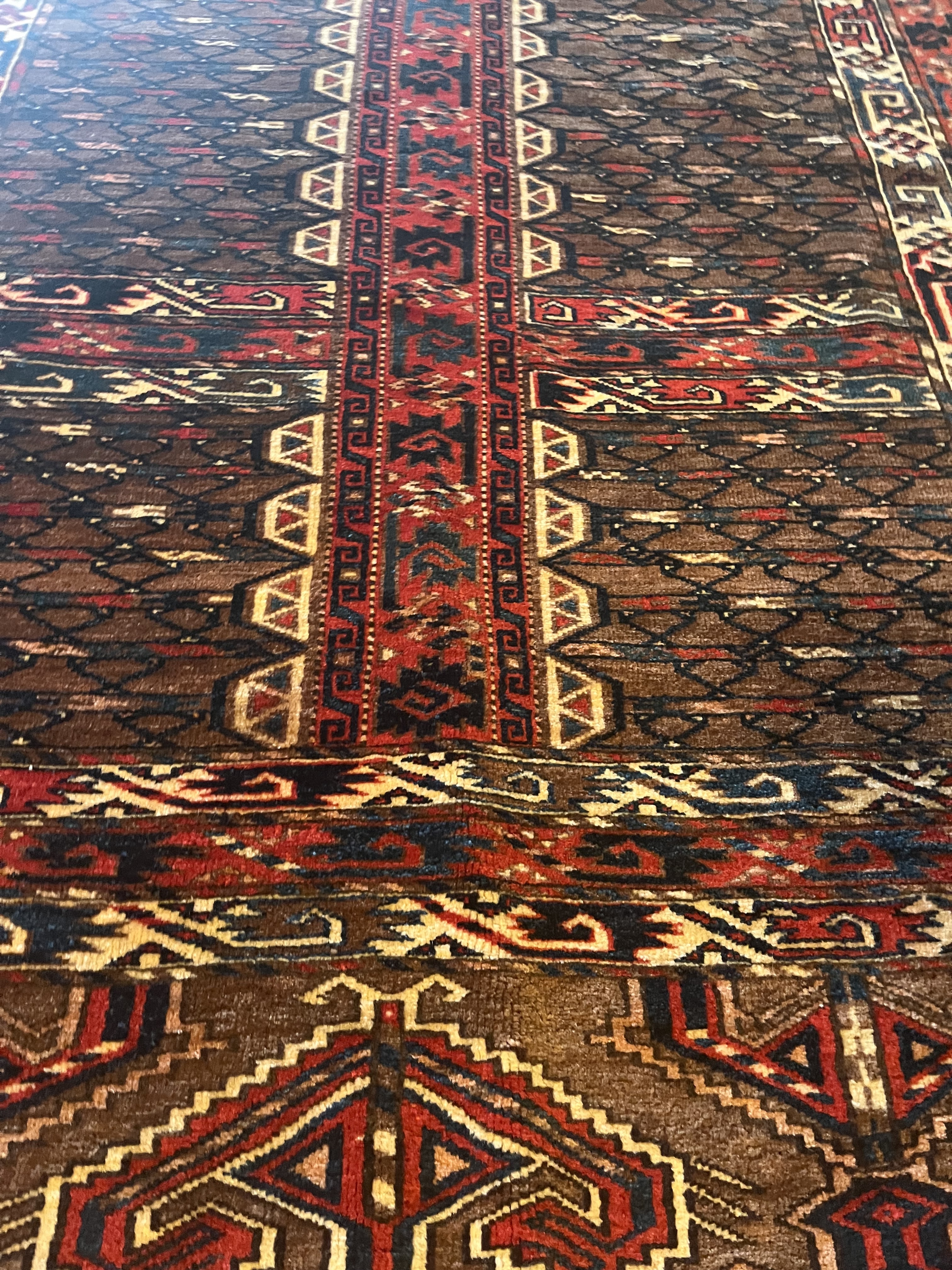Gegenstand: Handgeknüpfter Teppich Bezeichnung: Hatschlu Provenienz: Afghanistan Flor: Schafwolle Kette: Schafwolle Länge x Breite: ca. 155 x 128 cm = 1,98 qm Alter: ca. 1970 Zustand: dem Alter entsprechend gut Anmerkung: mehrere Mottenschäden Handelsstufe: Zeitwert Wert (ca.): 990 € Datum: 2025-04-12