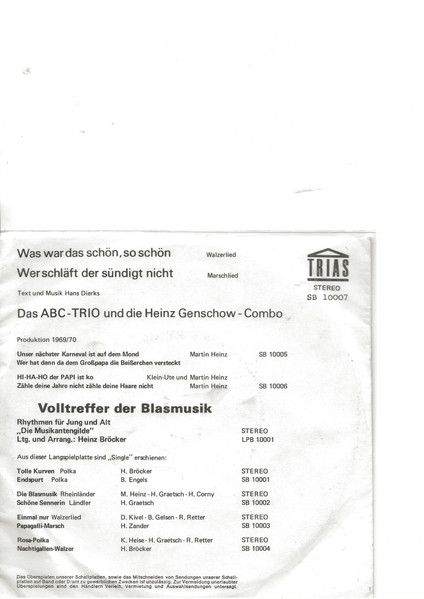 Vinyl / ABC-Trio (2), Heinz Genschow-Combo - Was War Das Schön .....