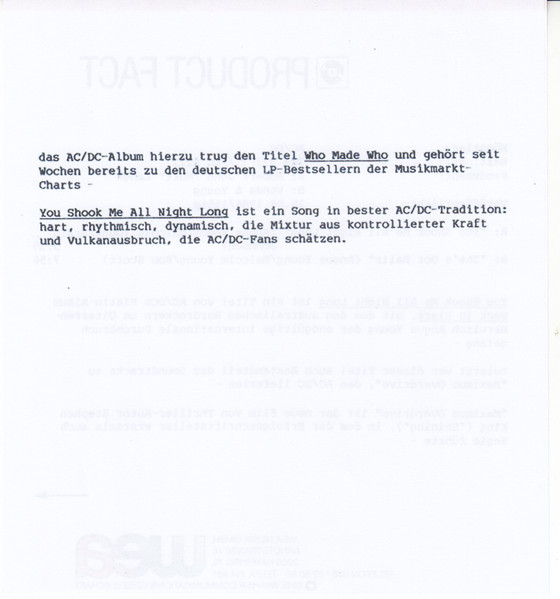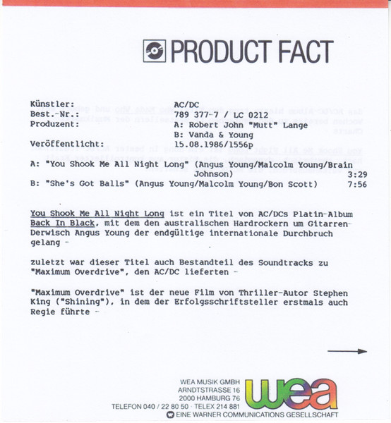 Vinyl / AC/DC - You Shook Me All Night Long