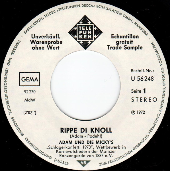 Vinyl / Adam Und Die Micky's - Rippe Di Knoll