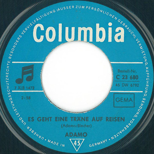 Vinyl / Adamo - Es Geht Eine Träne Auf Reisen / Mit Dir Beginnt Mein Leben