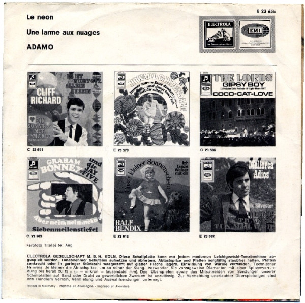 Vinyl / Adamo - Le Néon / Une Larme Aux Nuages
