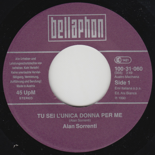 Vinyl / Alan Sorrenti - Tu Sei L'unica Donna Per Me / Non So Che Darei