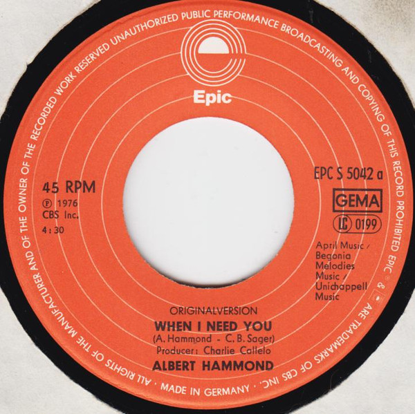 Vinyl / Albert Hammond - When I Need You / Cry Baby