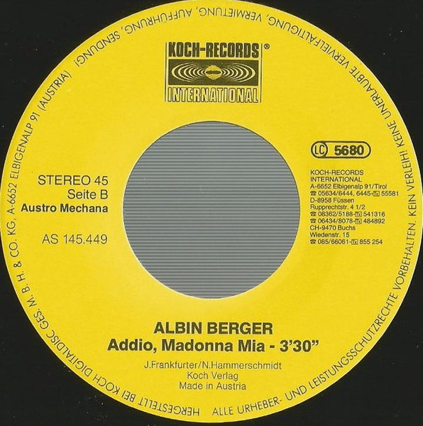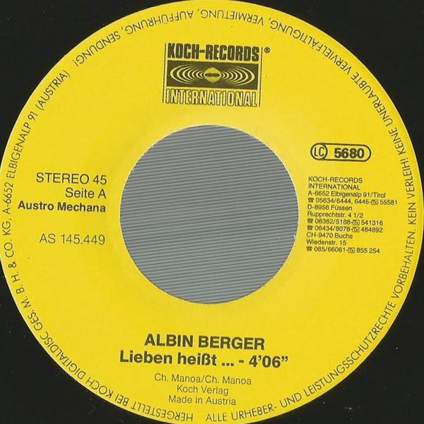 Vinyl / Albin Berger - Lieben Heißt... / Addio Madonna Mia