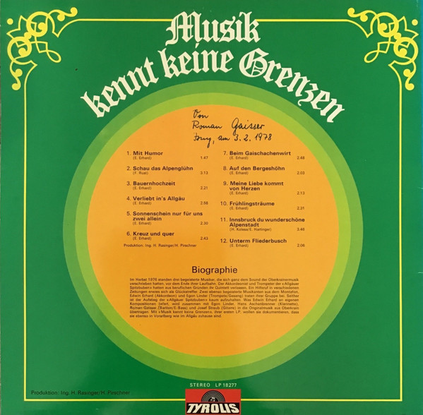 Vinyl / Allgäuer Spitzbuben - Musik Kennt Keine Grenzen