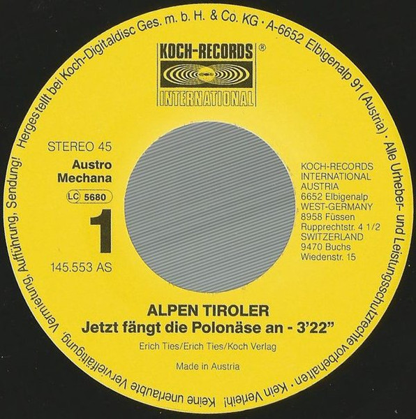 Vinyl / Alpen Tiroler - Jetzt Fängt Die Polonäse An