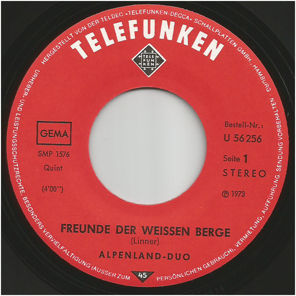 Vinyl / Alpenland Duo - Freunde Der Weissen Berge / Eine Fahrt Mit Dem Schlitten