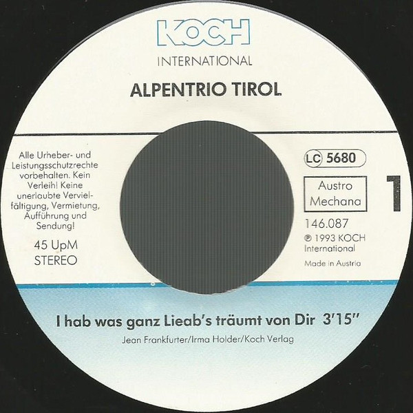 Vinyl / Alpentrio Tirol - I Hab Was Ganz Lieab's Träumt Von Dir