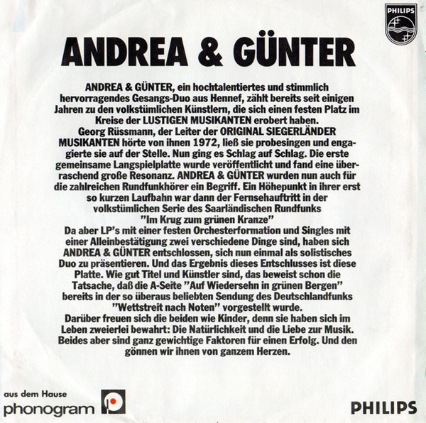Vinyl / Andrea & Günter* - Auf Wiedersehn In Grünen Bergen / Kuss-Polka